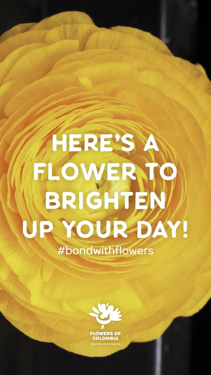With the campaign #bondwithflowers, Flowers of Colombia also invites everyone to share short messages illustrated by flower pictures and express their feelings to the people they care about, even if they are far away.